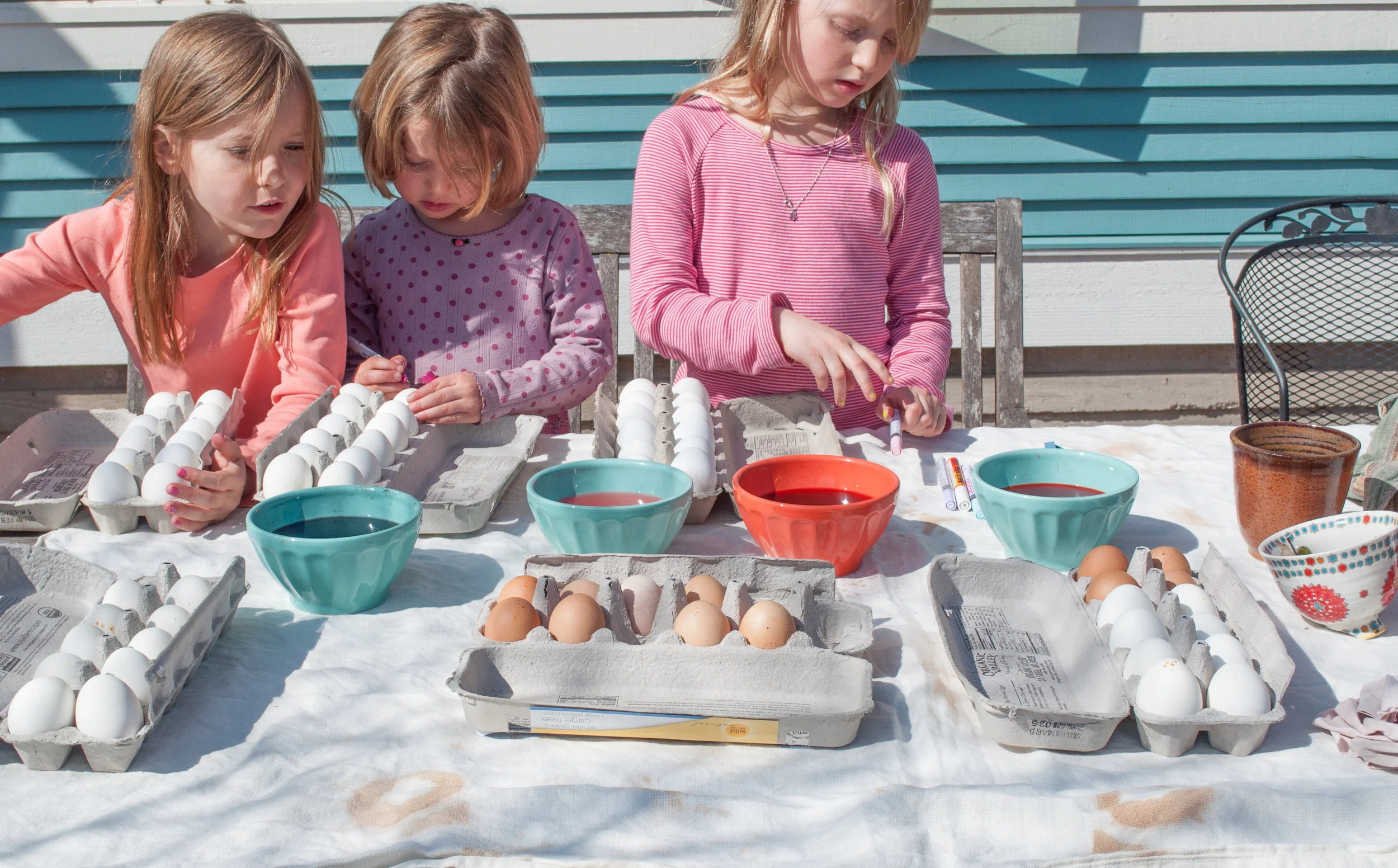 This year as our Welcome Spring, not quite Passover nor Easter, but a subtle homage to the two and more ancient traditions, Celebration we decorated eggs. I talked about the chickens laying more eggs, the abundance of bunnies we are suddenly seeing around town, how the earth and animals seem to be bursting with life and how we too seem to be just as eager to embrace the world outside our door. Happy Fertility and Blooming Day was heard more than once in our backyard discussions. But really it was about the chance to make art together.